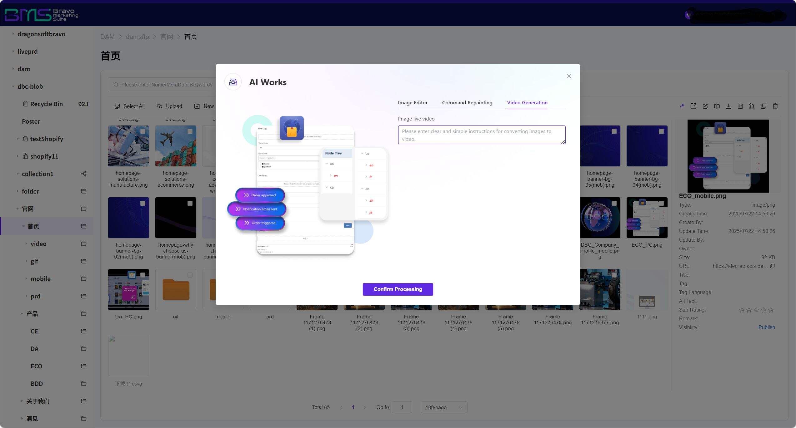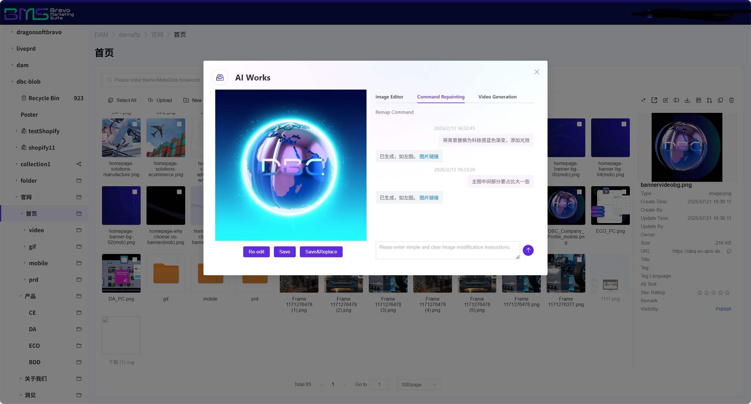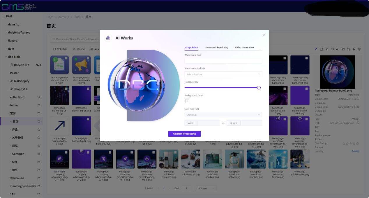 BMS Digital Experience Platform , integrates three core AI capabilities: online AI image editing, parametric design, and AI video generation. Supports natural-language-driven image re-rendering and batch intelligent processing—non-designers can produce professional-grade visual content in just 30 seconds. The system provides an intelligent tagging framework and AI-powered multimodal search, enabling sub-second precise retrieval across 200+ file formats. An embedded AI content security engine automatically identifies font copyright issues, sensitive elements, and infringement risks, ensuring end-to-end compliance. Through intelligent format-adaptive output, a single creative effort generates asset packages optimized for WeChat Mini Programs, Amazon, overseas social media, and other channels—truly realizing the "one-source, multi-use" enterprise content hub solution to reduce costs, improve efficiency, and usher in a new era of scalable content operations driven by generative AI tools.